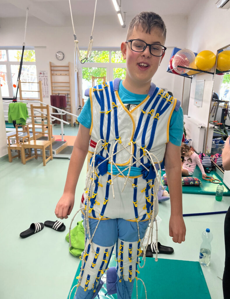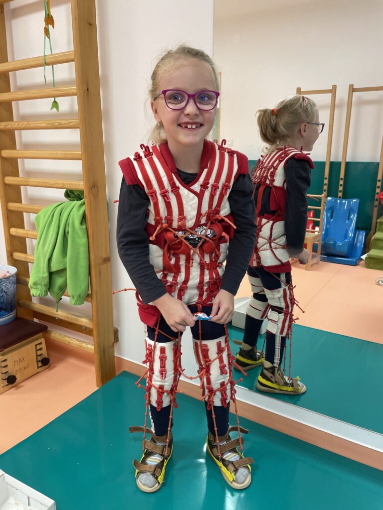 Speciálís, dinamikus ortézis, mely javítja a testtartást, korrigálja a törzs és a végtagok helyzetét, segít azok rendezésében, eközben nem gátolja a mozgásszabadságot. Hasznos segédeszköz a terápiák során, emellett otthon is használható. Szükségesség esetén segítünk a beszerzésben, használatát betanítjuk.